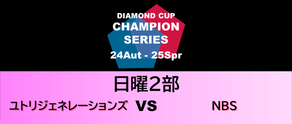 ダイヤモンドカップ チャンピオンシリーズ24秋-25春 ダイヤモンドカップチャンピオンシリーズ24秋-25春 ダイヤモンドカップチャンピオンシリーズ24秋-25春 日曜1部日曜2部日曜3部土曜1部土曜2部土曜3部 日曜1部 2026年1月25日(日) 日曜2部 2026年1月25日(日) 日曜3部 2026年1月25日(日) 土曜1部 2026年1月24日(土) 土曜2部 2026年1月24日(土) 土曜3部 2026年1月24日(土)