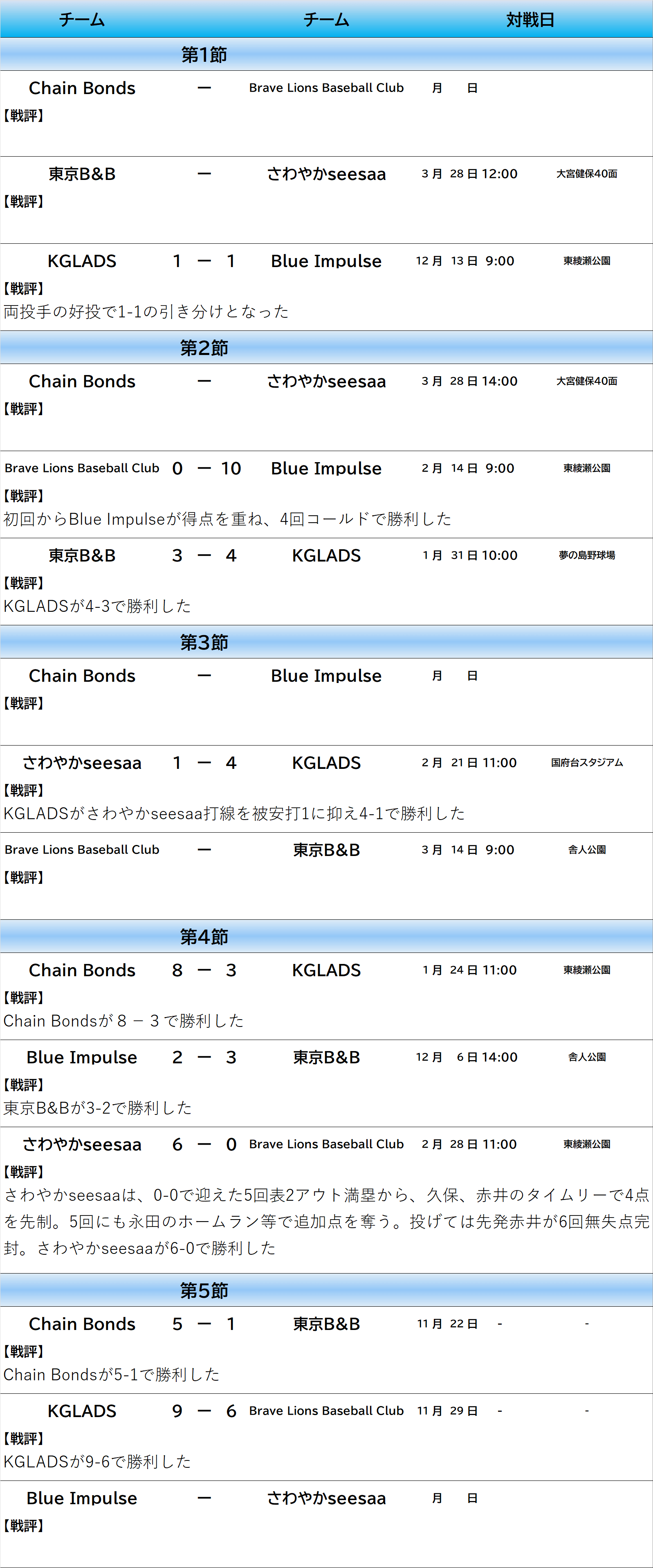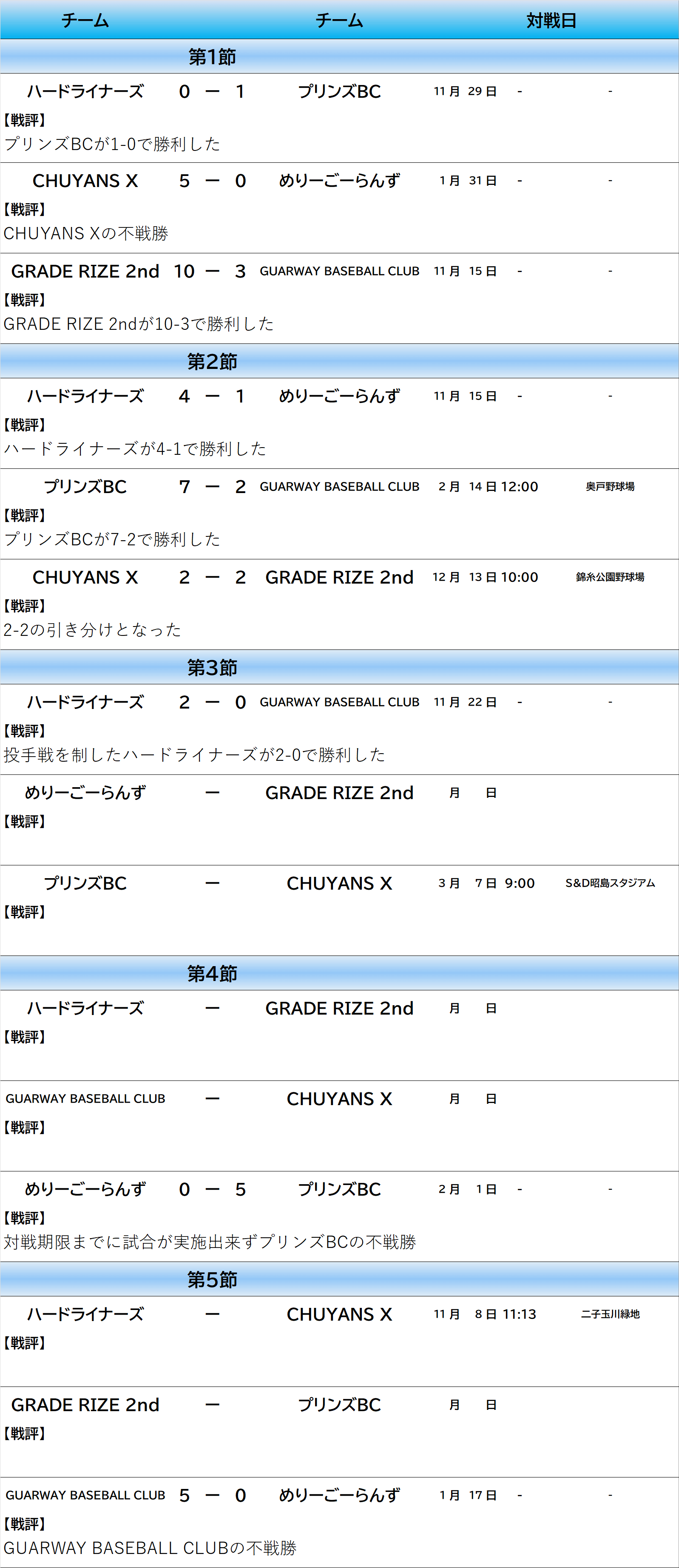 25秋_土1部リーグ ダイヤモンドカップ2025秋土曜1部リーグ ダイヤモンドカップ2025秋 土曜1部リーグ 試合日程報告 試合結果報告 AブロックBブロック決勝トーナメント Aブロック 各ブロック上位2チームが決勝トーナメント進出勝点>勝利数>不戦勝数*>失点数*>得失点差>直接対決結果で順位が決定*少ない方が上位 対戦期限 4月11日 Bブロック 各ブロック上位2チームが決勝トーナメント進出勝点>勝利数>不戦勝数*>失点数*>得失点差>直接対決結果で順位が決定*少ない方が上位 対戦期限4月11日 決勝トーナメント