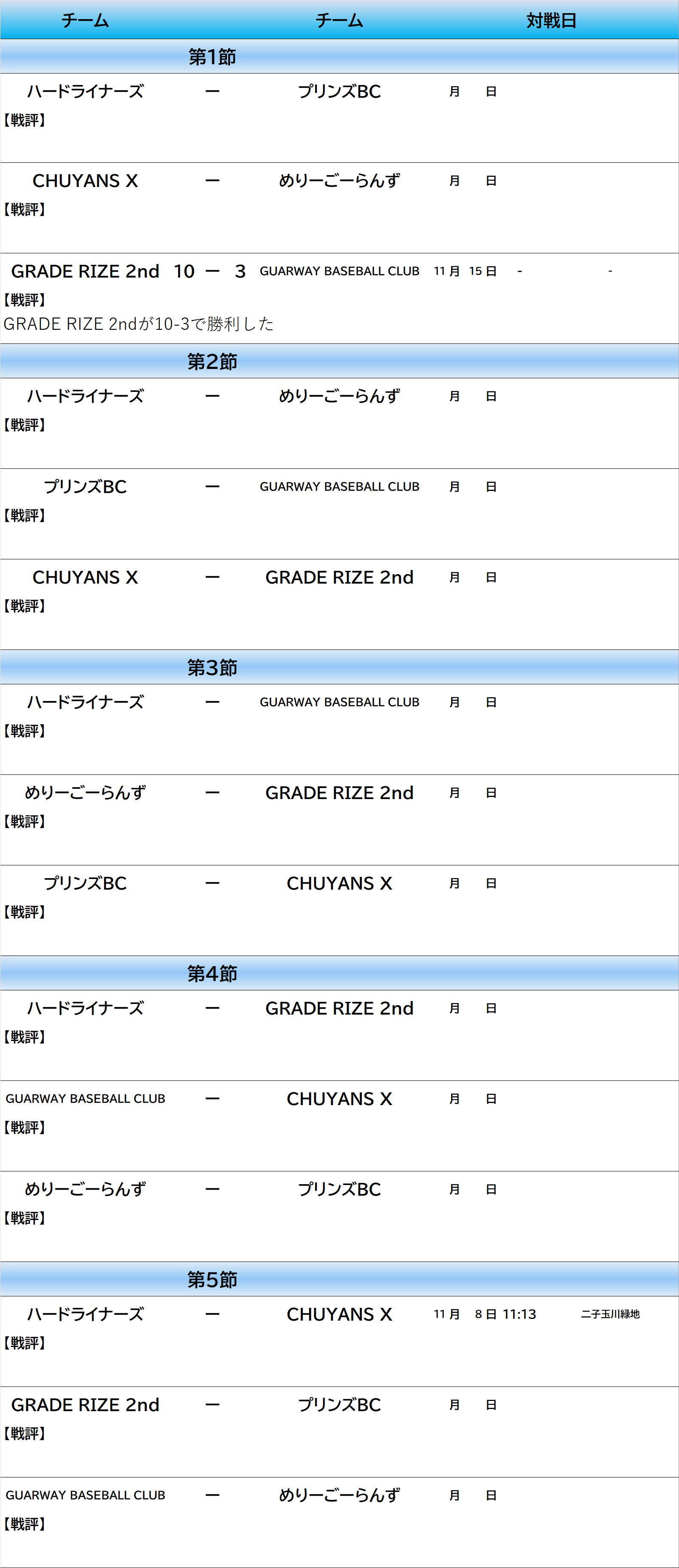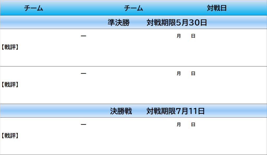 25秋_土1部リーグ ダイヤモンドカップ2025秋土曜1部リーグ ダイヤモンドカップ2025秋 土曜1部リーグ 試合日程報告 試合結果報告 AブロックBブロック決勝トーナメント Aブロック 各ブロック上位2チームが決勝トーナメント進出勝点>勝利数>不戦勝数*>失点数*>得失点差>直接対決結果で順位が決定*少ない方が上位 対戦期限 4月11日 Bブロック 各ブロック上位2チームが決勝トーナメント進出勝点>勝利数>不戦勝数*>失点数*>得失点差>直接対決結果で順位が決定*少ない方が上位 対戦期限4月11日 決勝トーナメント